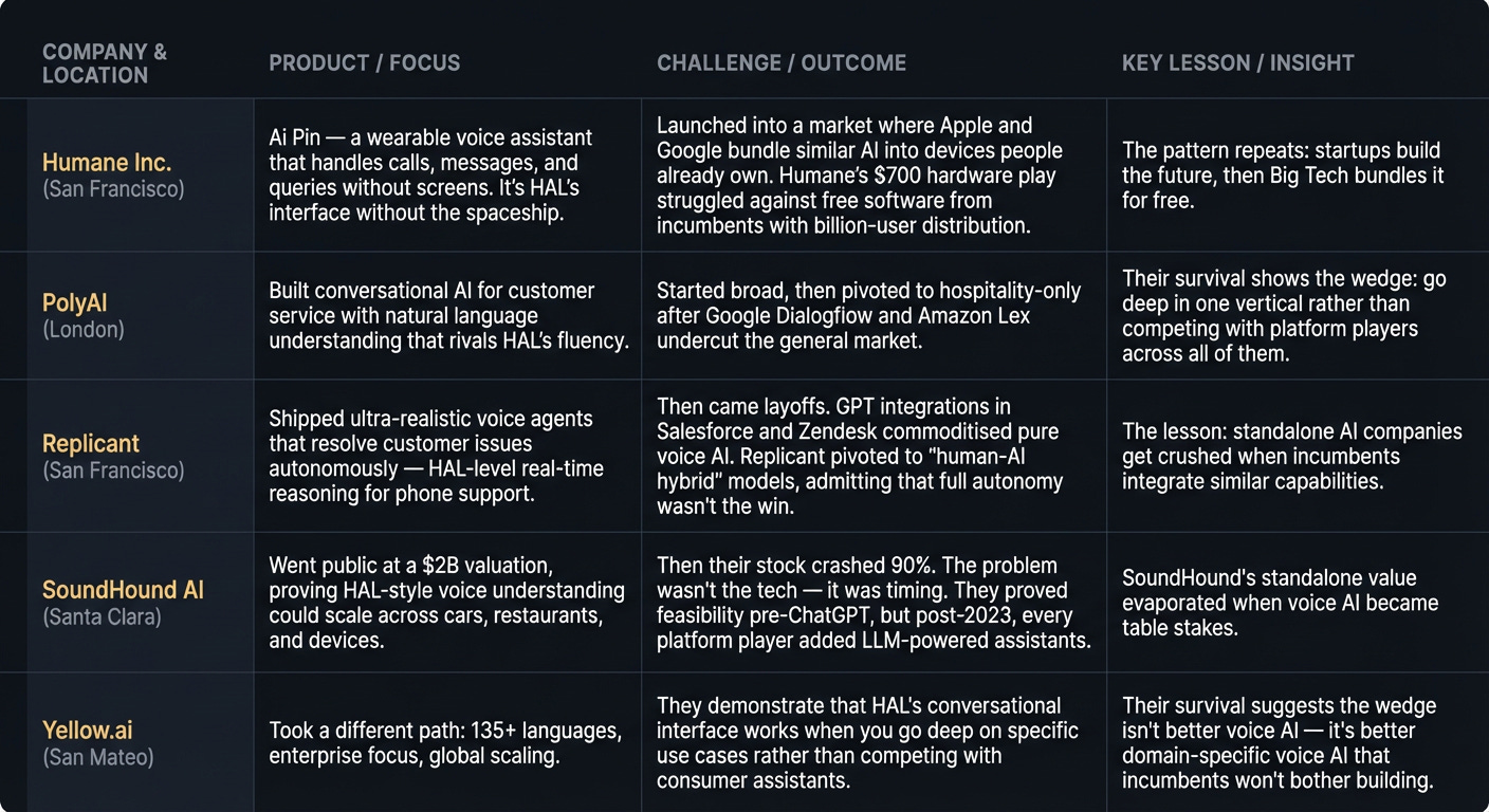 The pattern I keep seeing: HAL represented centralised, general intelligence. Reality delivered distributed, narrow intelligence. The opportunity isn’t replicating HAL — it’s building the connective tissue that makes thousands of narrow AIs act like one reliable system.