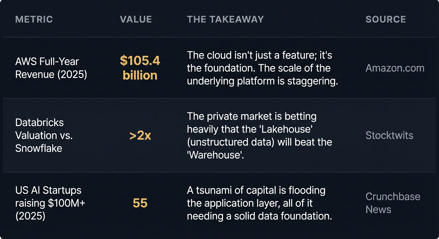 These numbers aren’t just figures on a balance sheet; they represent fundamental shifts in how value is created and captured in the data ecosystem. From the sheer scale of cloud infrastructure to private market bets on architectural choices, they show the stage on which the drama of data infrastructure unfolds. This financial backdrop created pressure, making legacy systems untenable and paving the way for the unbundling and rebundling that defines our timeline.