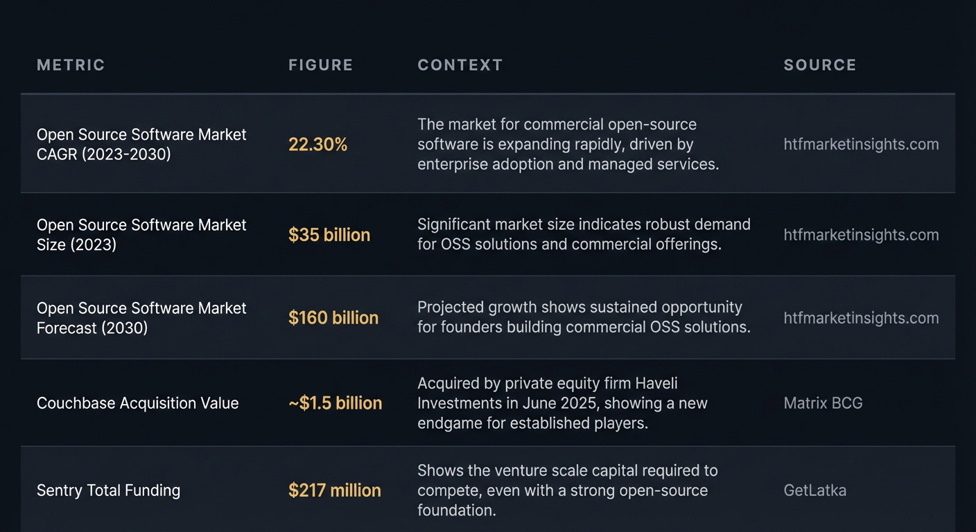 The timing signal is the maturation of the exit landscape with private equity now actively investing (Couchbase, $1.5B acquisition [Matrix BCG]). You don’t need to bet on a multi-billion-dollar IPO to build a successful company. The opportunity is to find the next essential open-source project that’s a pain to run at scale and build the definitive commercial service on top of it.