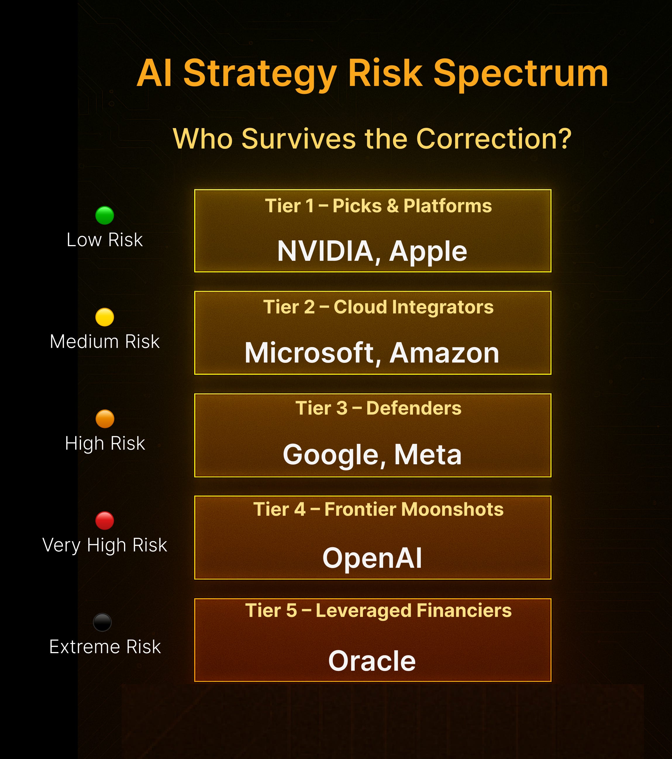 Let’s rank the major players by risk-adjusted strategic positioning — from smartest to most precarious.