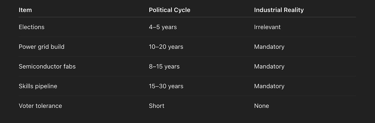 promise growth without explaining where it comes from subsidise voters without admitting the subsidy is debt gesture vaguely at “innovation” as if a slightly better app will fix a civilisation-scale energy and productivity problem