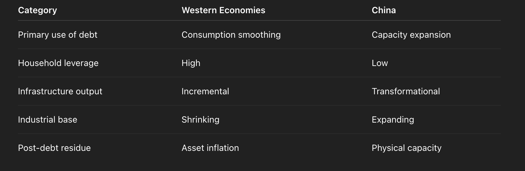 Yes, China has massive debt — but the system metabolised it into capacity, not consumption.