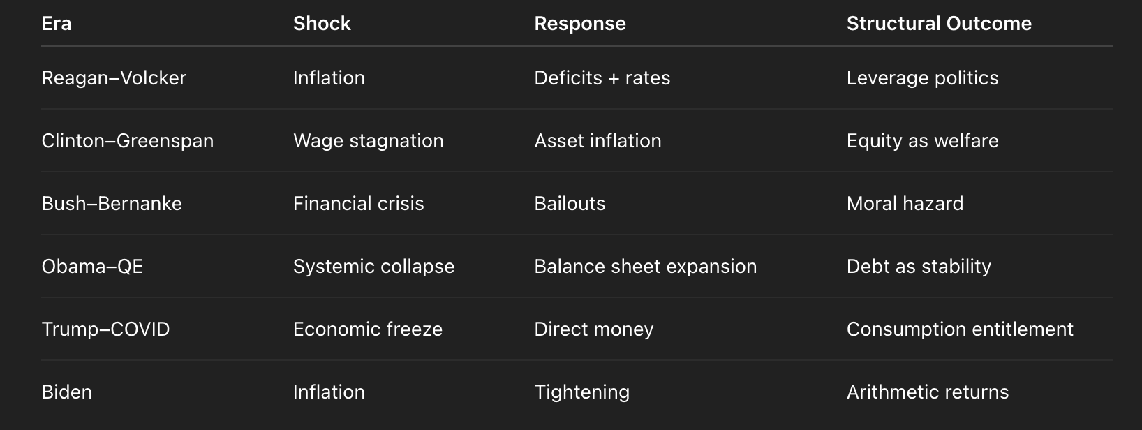 Governments issued debt. Companies leveraged up. Households mortgaged a future they assumed would be richer than the present.