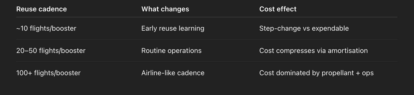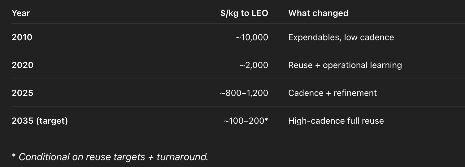 2035 (target): $100–200/kg with high-cadence reuse.3.1.2 Earth vs Orbit: Cost Structure Comparison