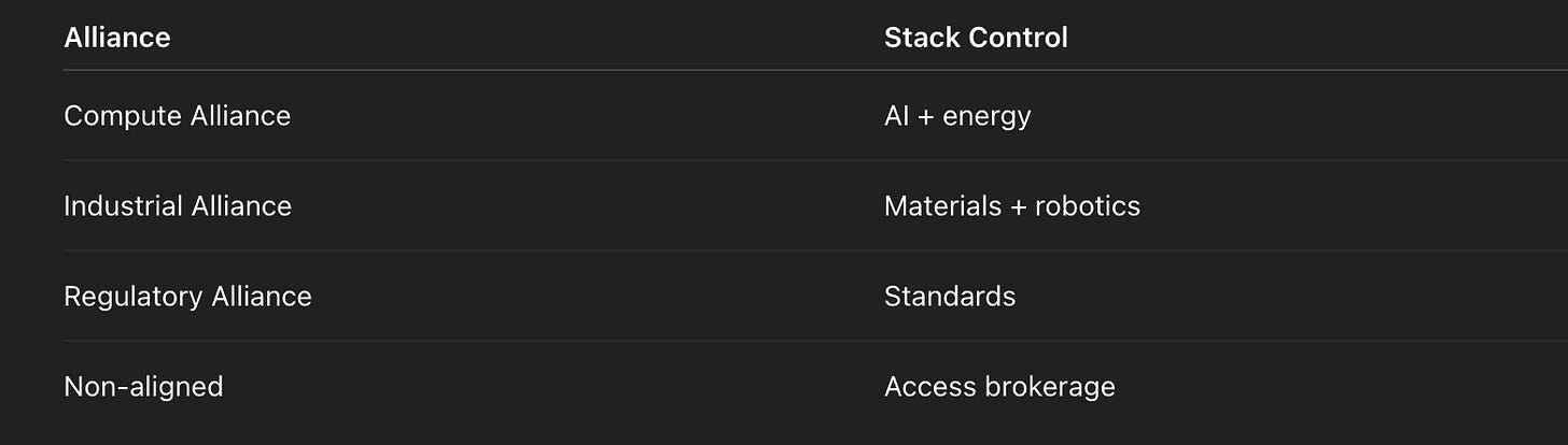 When the centre of gravity shifts upward, coalitions stop forming around borders and start forming around stacks: launch, energy, compute, materials, autonomy, insurance, standards.