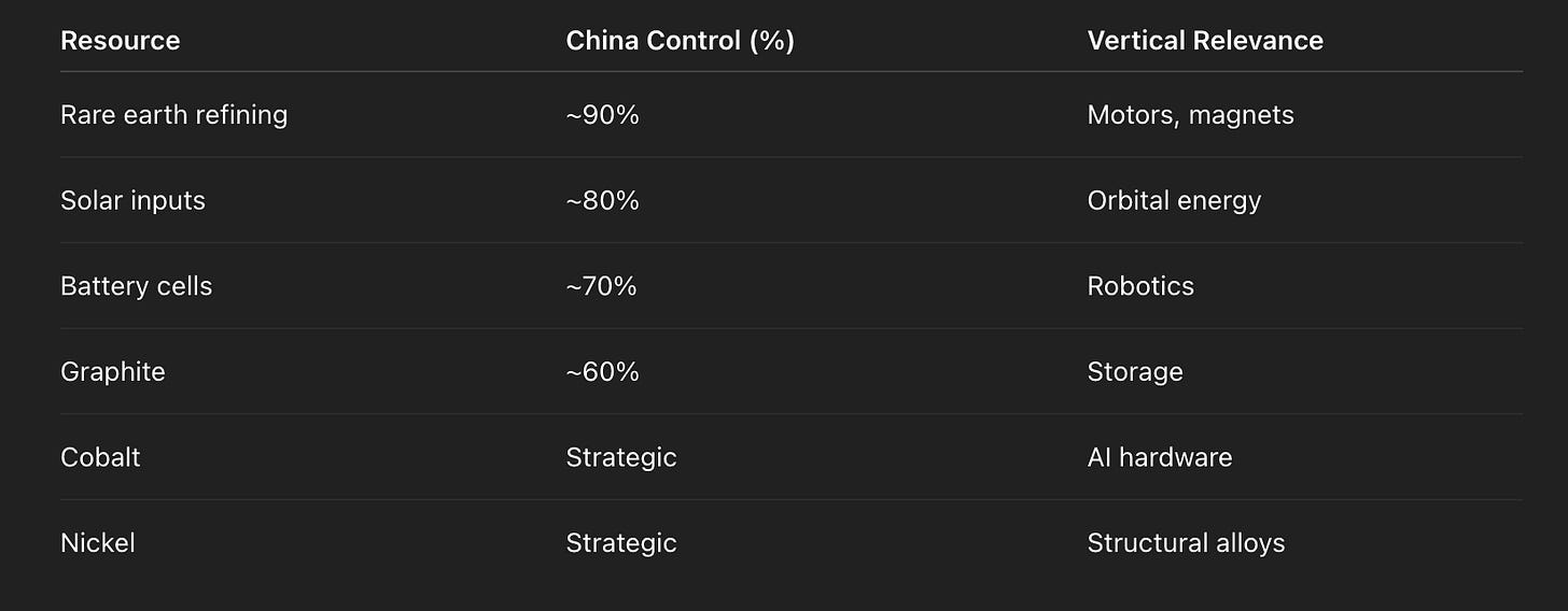 Vertical industry will not be built by states alone. It will be built by firms that behave like states: controlling capital, logistics, energy, and industrial planning.