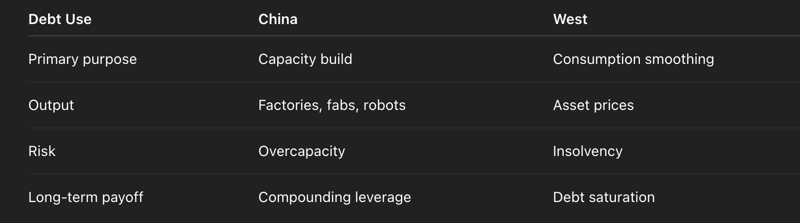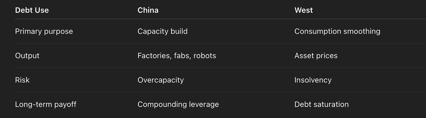 That 1:1 relationship — roughly a dollar of GDP growth for a dollar of debt growth — is not a statistic. It is an operating system. It means borrowing is still linked to productive expansion rather than political pacification.