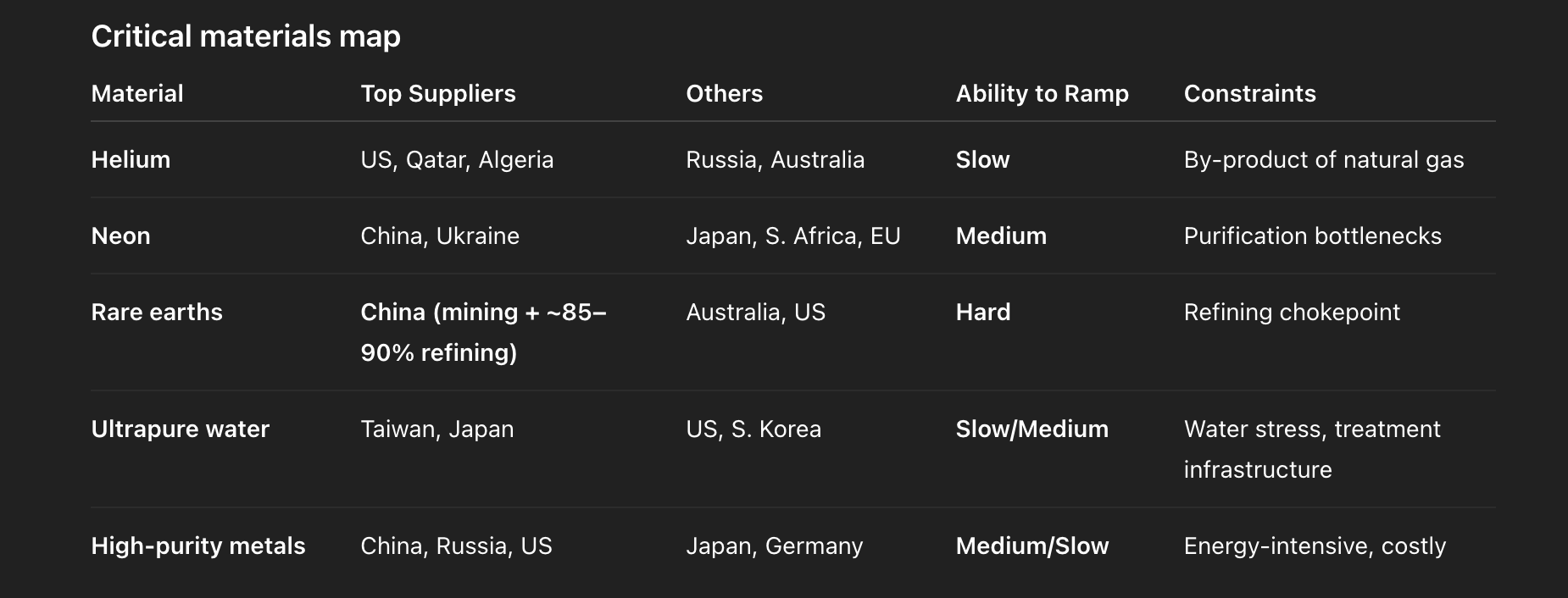 A war in Ukraine? Neon evaporates → EUV output drops → TSMC slows → Nvidia shipments dip → your AI roadmap slips months. This isn’t theory. This is how tightly integrated the system is.