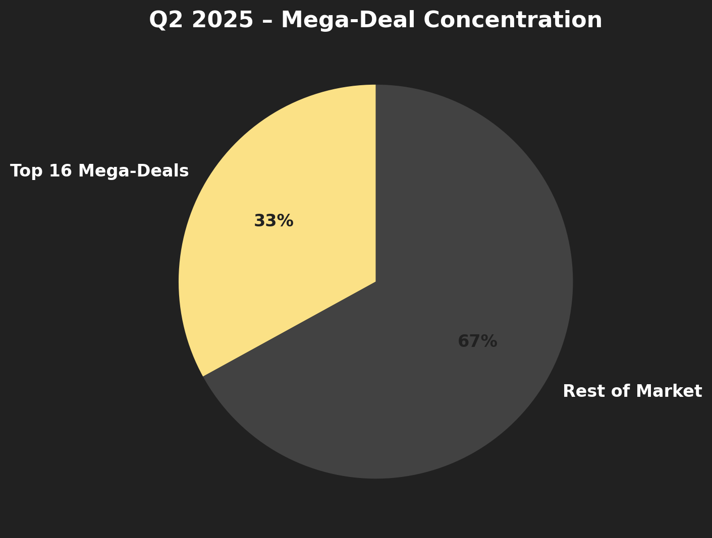 A handful of giants now drive the venture landscape: just 16 companies soaked up a third of Q2’s funding, headlined by: